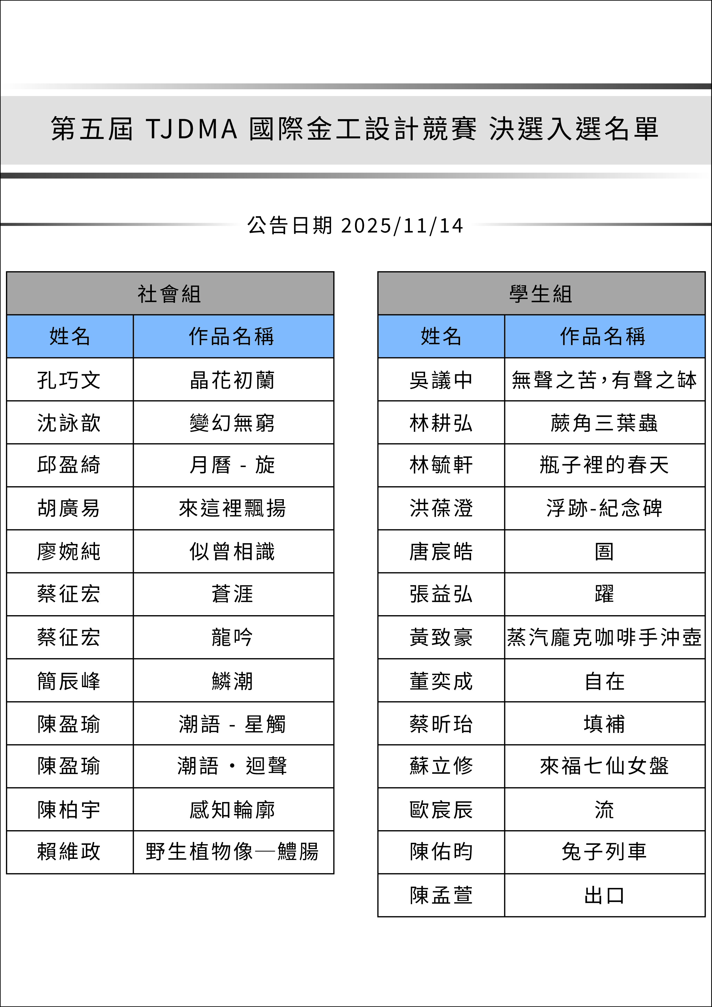 感謝各位創作者參與第五屆 TJDMA 國際金工設計競賽。